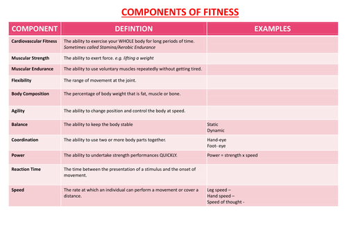 Components of fitness fitness defines the ability to perform physical activity and encompasses a wide range of abilities. Learn about and revise health fitness and exercise in sporting and life performance with this bbc bitesize gcse pe edexcel study guide. You are as fit as your competency in each of these ten skills. Fitness has a variety of components and there are many ways it can be measured.