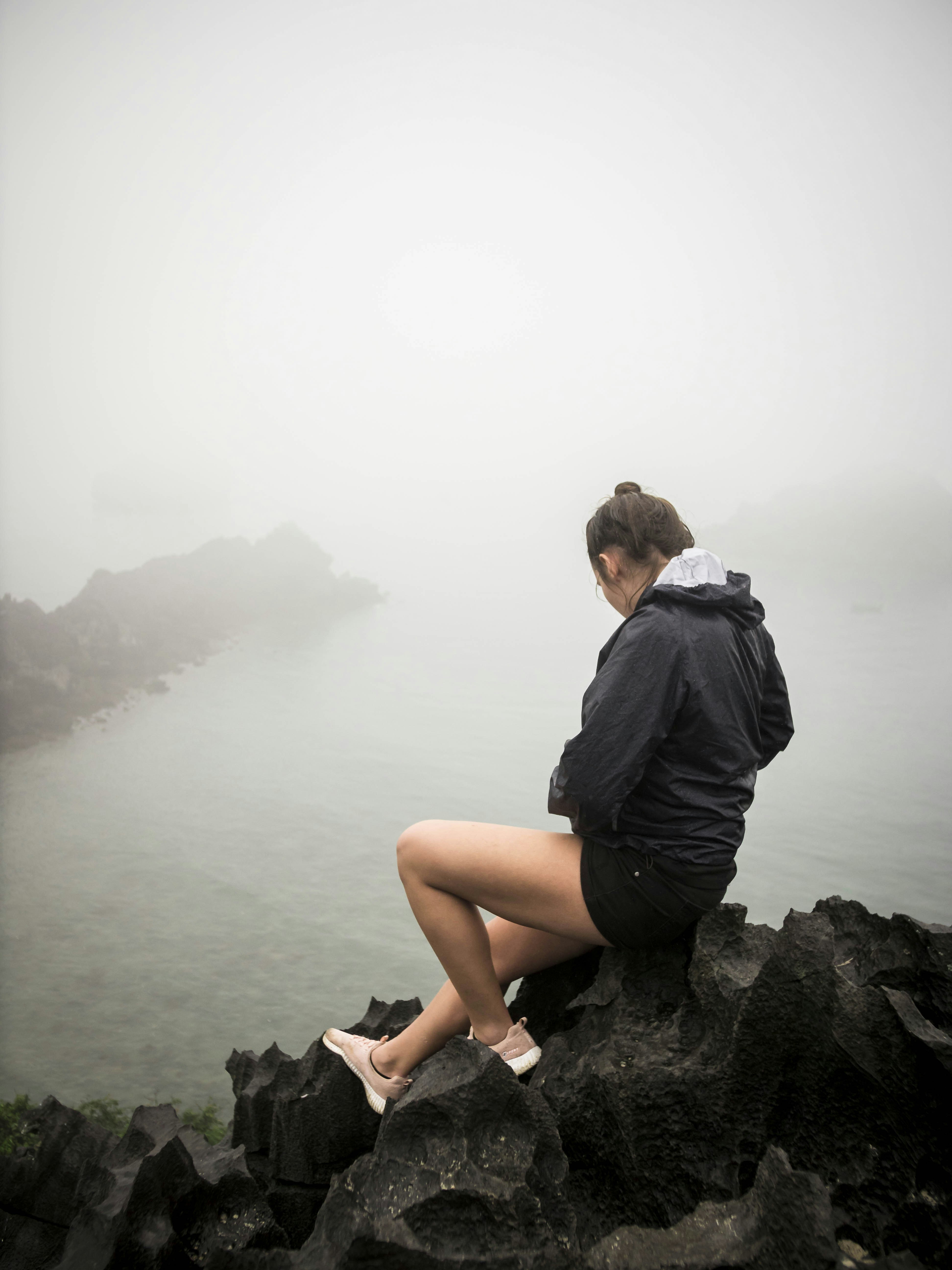 Woman Sitting Down On Rock Photo Free Nature Image On Unsplash