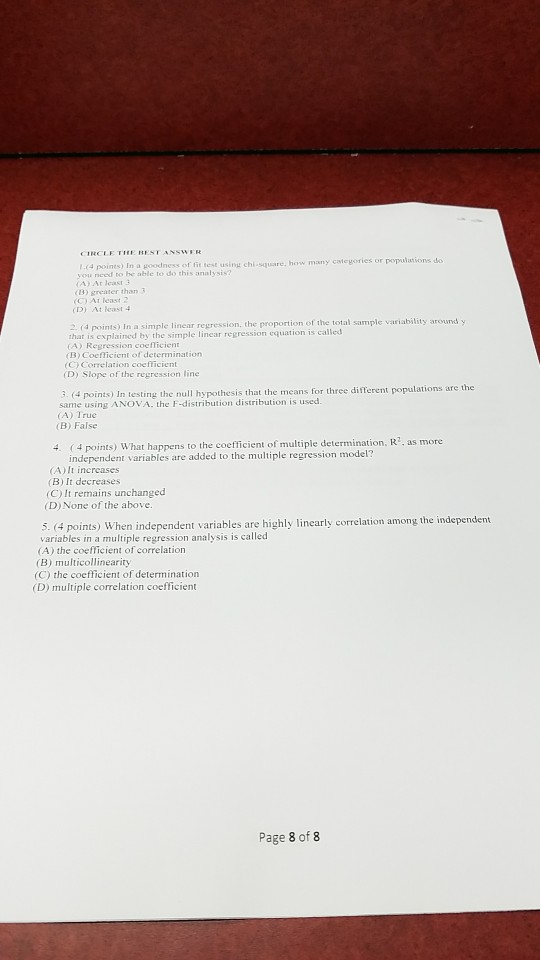 Solved In A Goodness Of Fit Test Using Chi Square How Ma