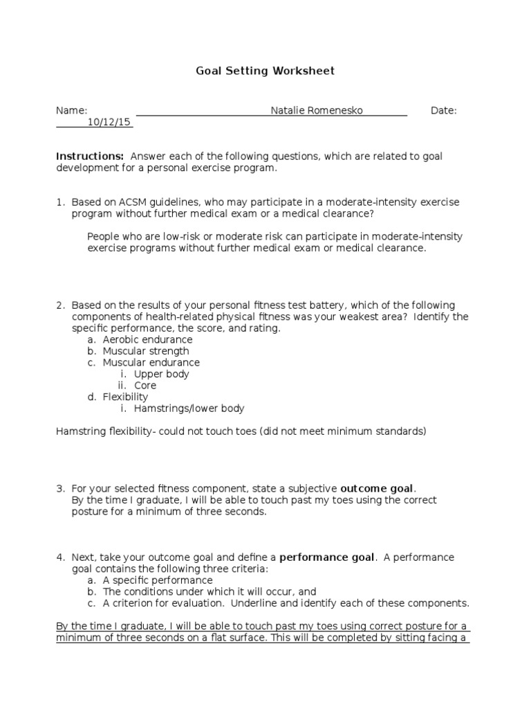 Esc100 Goal Worksheet Physical Fitness Flexibility Anatomy