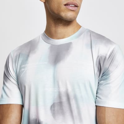 Blue Printed Short Sleeve Slim Fit T Shirt River Island