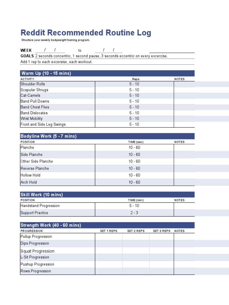 Reddit Bodyweight Routine Log Sports Human Anatomy